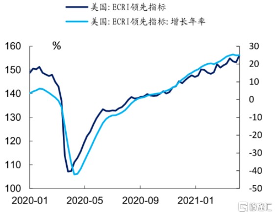 隨着疫苗快速接種、美國財政擴張,美國經濟正在逐漸復甦。從經濟週期研究所 ECRI 的經濟領先指標來看,目前美國經濟已經恢復到疫情前水平。