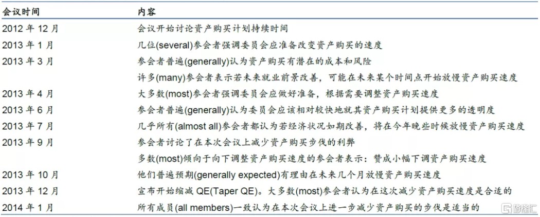上一輪收緊貨幣政策的週期中發生在次貸危機後的 2013 年,總結當時的貨幣政策操作可以發現,美聯儲在開始加息的前兩年就已經着手縮減 QE。