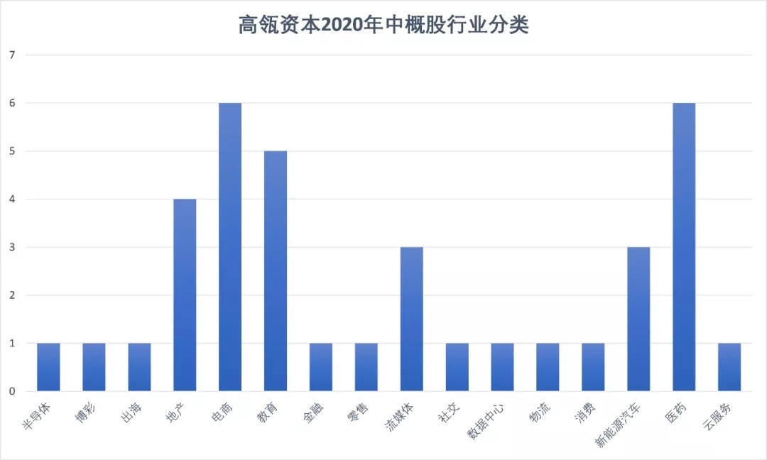 從行業分類來看,電商同樣是高瓴最喜愛的行業,除了京東、阿里、拼多多三巨頭,高瓴還持有蘑菇街、唯品會(已清倉)、優信等垂類電商。此外醫藥也是高瓴重點佈局的行業,2020 年高瓴先後投資了 6 家中概股醫藥公司,除中概股以外,高瓴還在 2020 年投資了近 30 家歐美醫療健康公司。