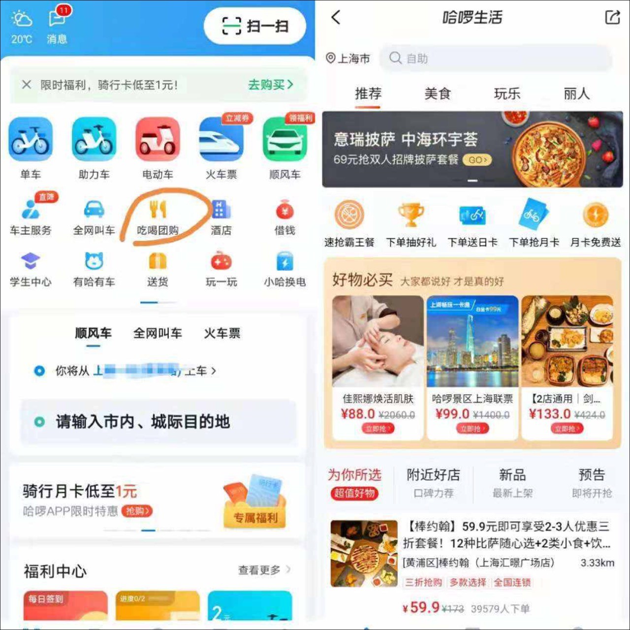 一位知情人士對全天候科技透露,“目前用户可以直接在哈囉 App 下單團購服務。哈囉未來也可能在用户騎行結束後,推送停車地附近的餐廳或其他商户的優惠券。”