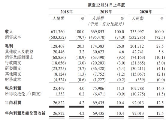 從財務數據方面,讀書郎近年以來的日子過得不錯。2018-2020 年,讀書郎教育的收入分別約為 6.32 億元(人民幣,單位下同)、6.7 億元及 7.34 億元,呈現逐年上升的趨勢。期內,公司淨利潤由 2018 年的 2680 萬元大幅增加至 2019 年的 6940 萬元,並進一步增加至 2020 年的 9200 萬元,跟隨營收的增長而不斷攀升。