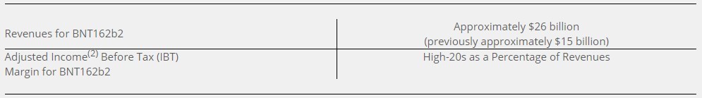 另外,輝瑞也上調了其新冠疫苗的盈利預測:預計 2021 年來自 BNT162b2 營收約為 260 億美元。