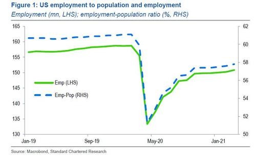 多家機構認為,若非農就業人數增加 100-150 萬,美聯儲實現就業目標的時間會提前很多;而渣打銀行認為,只有非農數據增加 200 萬以上時,美聯儲才會改變鴿派立場。