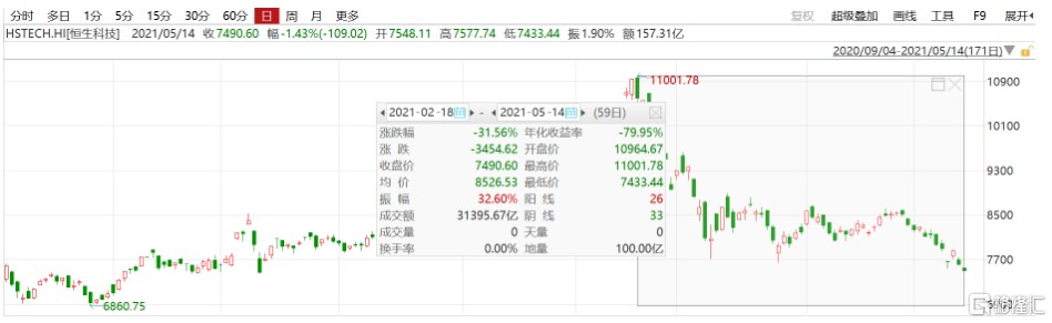 就拿港股恒生科技指數來説,在今年 2 月份創下最高點之後,到今天跌幅累計超 30%,值得一提的是,這種跌幅也是造成了該指數自發布以來首次跌破年線。