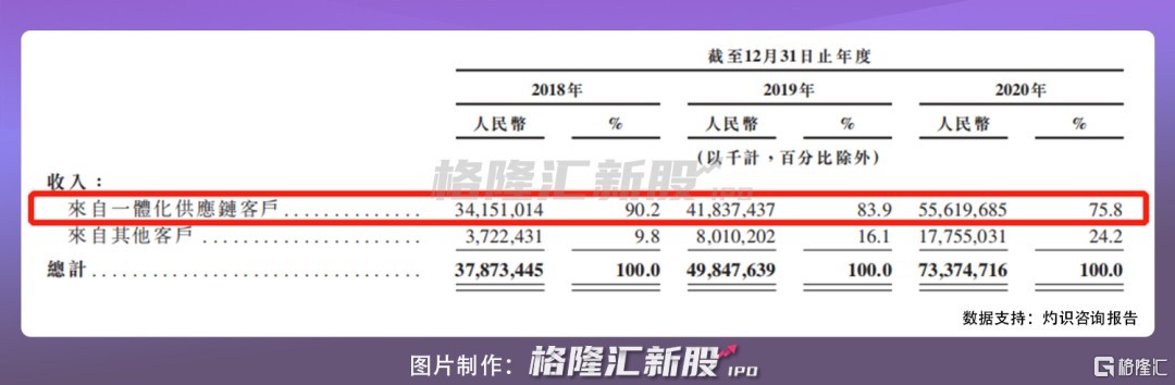 另一方面,一體化供應鏈業務已是京東物流的核心引擎。招股書數據顯示,2018-2020 年,京東物流來自一體化供應鏈業務的收入從約 341 億元增至約 556 億元,年複合增長率達 28% 左右,目前佔比超過七成。相應地,外部客户數量由超過 3.2 萬名上漲至近 4 萬名。