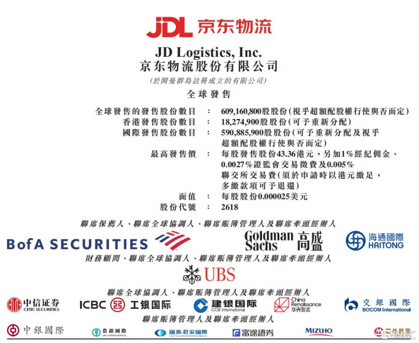 時隔 14 年,脱胎於京東集團(以下簡稱 “京東”)的京東物流,即將要在港上市了。據港交所官網,京東物流已正式啓動招股,招股時間為 5 月 17 日-21 日,擬發行約 6.09 億股,其中公開發售約佔 3%,國際配售約佔 97%,每股發行價為 39.36-43.36 港元,預計將於 5 月 28 日在港掛牌上市。這也是繼京東健康、京東數科之後,京東在資本市場打出的第三張王牌,逐步兑現其孵化上市大計。