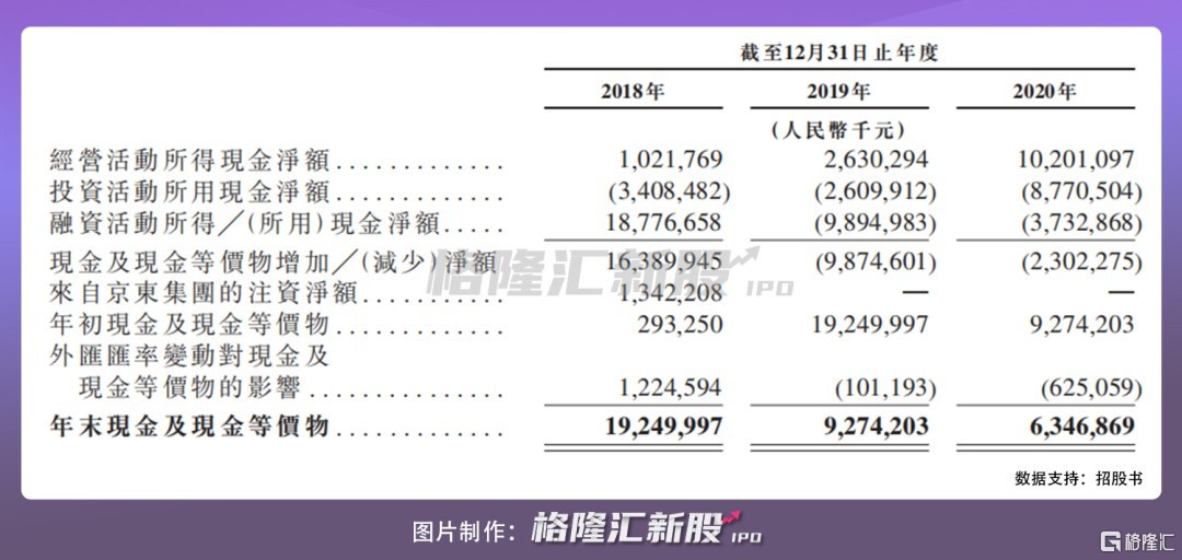 再透過現金流窗口來看,京東物流同樣表現出健康的發展走勢。近三年來,京東物流的經營現金流持續增長,且在 2019 年實現正向的自由現金流,並維持增長態勢。