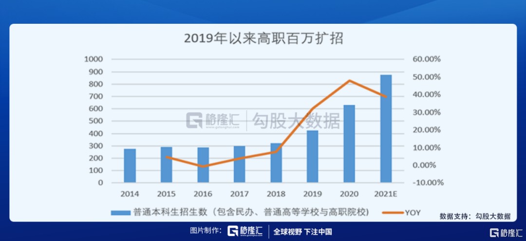 2.職業教育收穫政策支持,有望迎來黃金髮展期。第九條指出 “國家鼓勵企業以獨資、合資、合作等方式依法舉辦或者參與舉辦實施職業教育的民辦學校”,近年來職業教育利好政策密集頒佈,疊加國家有意加快職業教育發展的長期趨勢,職業教育將迎來機會窗口期。