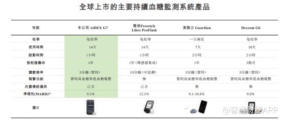 除了 Equil 外,公司的另一款核心產品是血糖監測系統 AiDEX G7。與 Equil 國內無競爭對手相比,AiDEX G7 的競爭優勢就沒那麼明顯,儘管其使用壽命高達四年,遠遠優於其他產品,但是 9.1% 的準確性並不優秀。