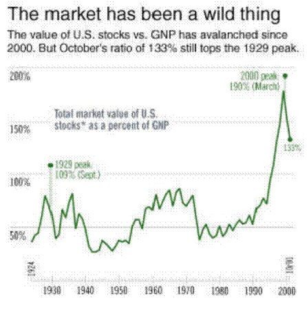 老巴认为,如果在任何时候,想寻找一个衡量股票市场估值的最佳单一手段。