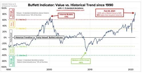 只是在 1995 年之后,巴菲特指标才第一次超过了 100%。