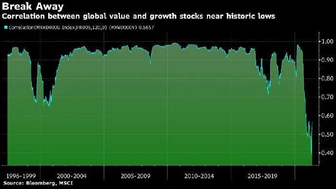 从下图我们也可以看出,价值和成长的相关性是相反的。