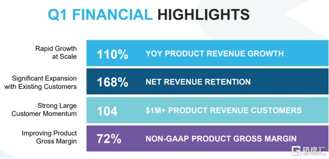 截至季末,公司客户總數為 4532 家,略高於分析師預期的 4500 家。其中,500 強企業客户數量同比增長了 30% 到 187 家;過去一年內貢獻產品收入超過 100 萬美元的大客户數量同比增長了 117% 至 104 家。