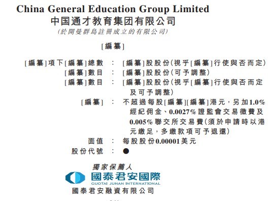 據港交所 5 月 31 日披露,中國通才教育集團有限公司向港交所主板遞交上市申請,保薦人為國泰君安融資有限公司。