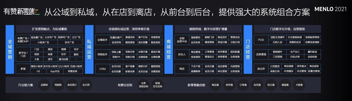 對此,有贊指出,業務升級意味着有贊從電商 SaaS 到新零售 SaaS 的順利過渡;同時也意味着,有贊將服務更多大中型的零售企業,面臨更復雜的經營需求。