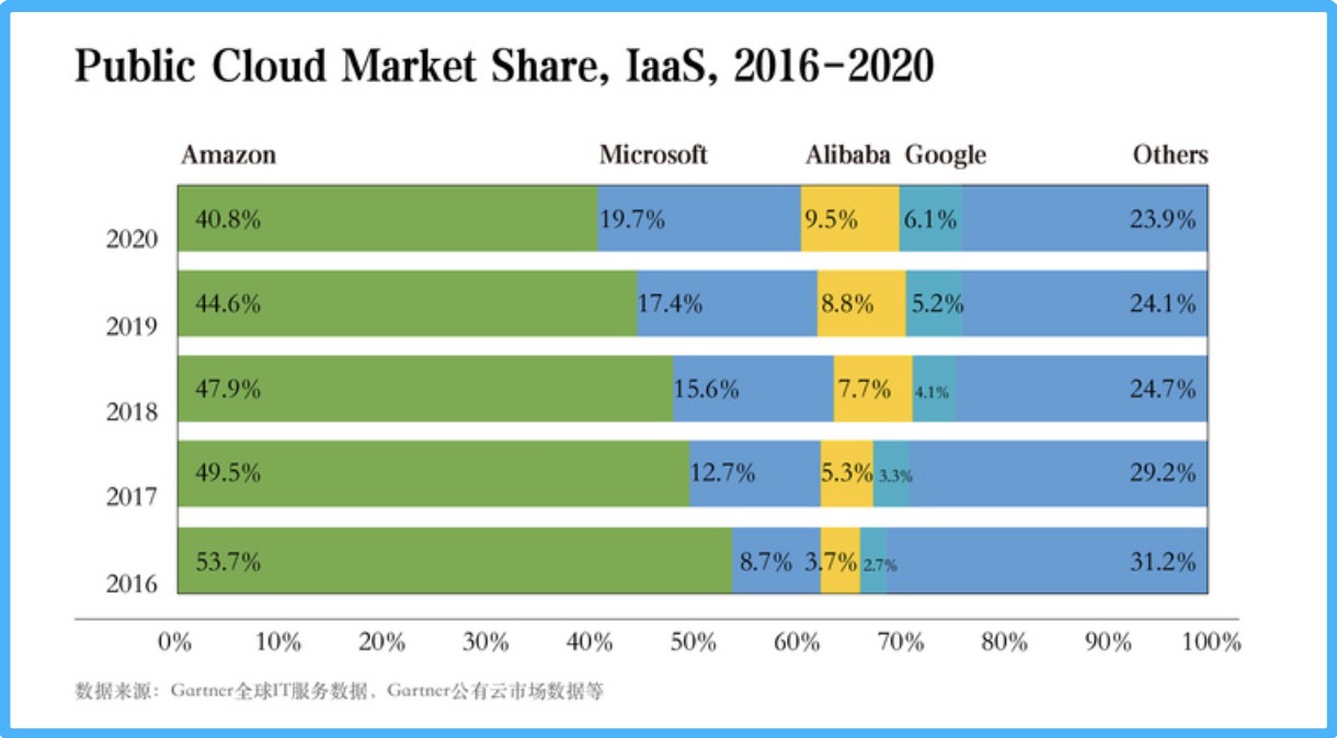 國際研究機構 Gartner 發佈最新報告顯示,中國雲計算正高速增長,在全球市場上佔比逐漸趕超,阿里雲排名全球第三、亞太第一,市場份額達 9.5%;IDC 發佈的《中國公有云服務市場(2020 第四季度)跟蹤》報告,阿里雲仍然佔據中國市場份額第一的位置,佔比達 40.6%。