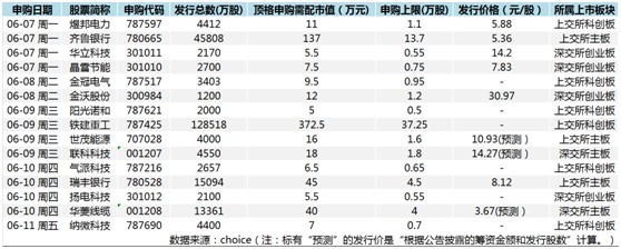 附圖:6 月 7 日-6 月 11 日 A 股新股申購信息