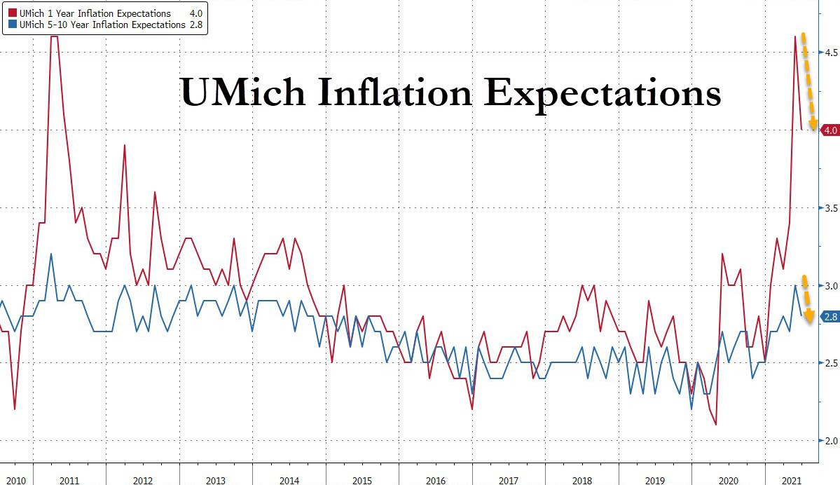 而彭博在數據公佈後的文章當中指出,隨着旅行限制的取消,氣温回暖以及健康問題的弱化,消費者的情緒更加樂觀。與此同時,隨着經濟發展加速,政策制定者以及投資者都在密切關注通脹預期。