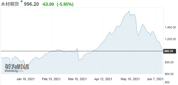 以木材為例,在過去一年,由於困在家裏的人們將閒賦資金用於房屋改造,這導致木材成為美國大宗商品中漲幅最大的品類之一,但自 5 月份達到頂峯以來,其價格已經跌去 40%,創造了有史以來的短期最大跌幅。