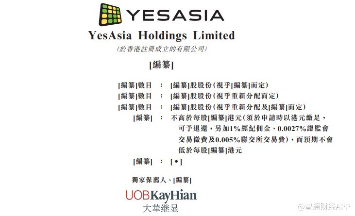 智通財經 APP 獲悉,據港交所 6 月 23 日披露,YesAsia Holdings Limited(簡稱 “YesAsia”) 通過港交所主板上市聆訊,大華繼顯為其獨家保薦人。