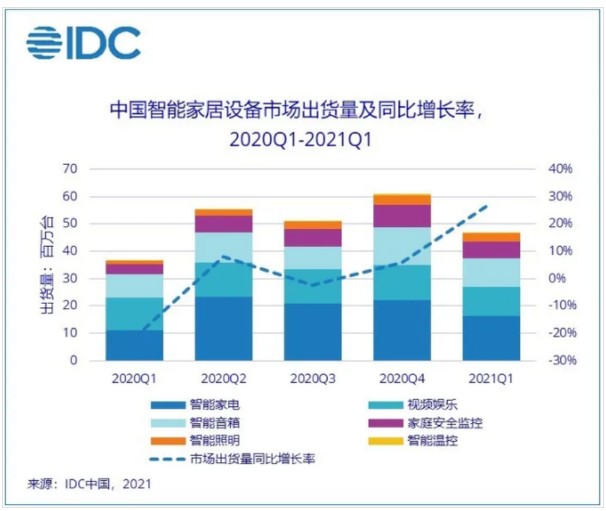 週末最新公佈的智能音箱銷量數據來看,2021 年 5 月銷售額約 8 億元,同比增長 22%。值得注意的是 5 月份是消費電子的淡季,6 月份伴隨 618 的電商活動後銷量會持續更多,同時在四季度銷量會達到最高水平。就目前市場份額來看,前三位是百度、天貓精靈和小米。