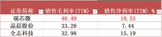 接下來我們就看一下瑞芯微的資本回報率是 15.5%,而全志科技和晶晨股份分別為 9.7% 和 7.1%。淨資產收益率又如何呢?三家公司的該項數值分別為 4.8%、3.6% 和 3.0%。
