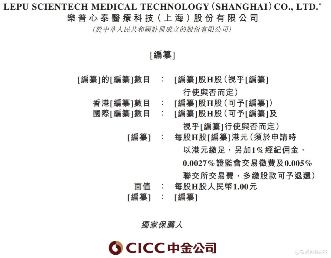 智通财经 APP 获悉,据港交所 6 月 25 日披露,乐普医疗控股子公司乐普心泰医疗科技 (上海) 公司向港交所主板递交上市申请,中金公司为独家保荐人。