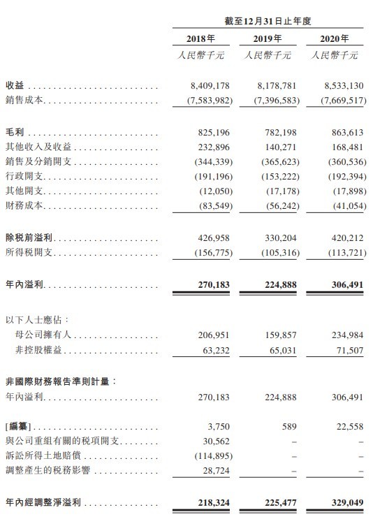 財務方面,2018-2020 財政年度,該公司營收分別為 84.09 億元 (人民幣,下同)、81.79 億元及 85.33 億元,經調整淨利潤分別為 2.18 億元、2.25 元及 3.29 億元。