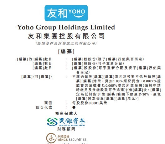6 月 30 日,友和集團控股有限公司向港交所主板遞交上市申請,民銀資本為其獨家保薦人,永時證券為其財務顧問。
