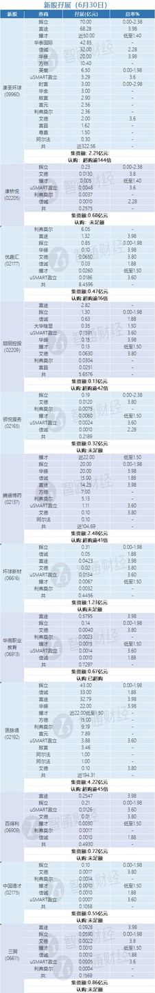新股孖展統計 | 6 月 30 日