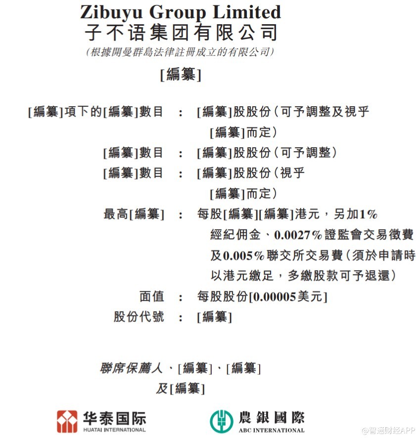 智通財經 APP 獲悉,據港交所 6 月 30 日披露,子不語集團有限公司向港交所主板提交上市申請,華泰國際及農銀國際為聯席保薦人。