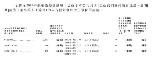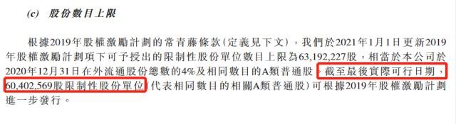 本次股權激勵計劃於 2020 年 6 月生效,有效期為 10 年,授予的獎勵有限制性股份、限制性股份單位、股份增值權、股息等價物等多種結算方式,其中截至目前,已授出但未行使的限制性股份單位為 43,218,456 股,約佔本輪計劃用於激勵的股份總數的 70%。已被授予限制性股份單位的員工每人獲得的股份數目在 2 萬股以下的人數最多,約佔承授人總數的 84.63%。