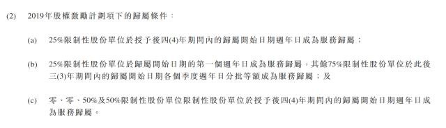 該計劃下所授予的限制性股份單位,也設置了三種不同的歸屬條件。同樣都是四年內將所授予的限制性股份單位歸屬給承授人,每個期間歸屬的比例不同,對承授人來説激勵效果也不一樣。小鵬汽車的這種股權激勵的歸屬條件是比較機動靈活的,可以針對短期之內公司的發展需要,選用不同的歸屬條件,力求把每一輪的股權激勵都發揮出最大效用。