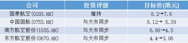 摩根士丹利發表的研究報告指,將 2021-23 年內地的本地及國際航空需求估算下降,將內地三大航空股的 H 股評級由增持降至與大市同步,但對春秋航空及國泰 (0293.HK) 評級則維持增持。該行相信中資航空股 2021 年仍錄虧損,但到 2022 年則會有微利,在盈利可見性提升之前,不認為會看到中資航空股估值持續復甦。該行下調 2021-23 年內地本地及國際航空交通量估算,將 2022 年每股盈測降 45-93%,而 2023 年則降 18-60%,目標價平均降 24%。