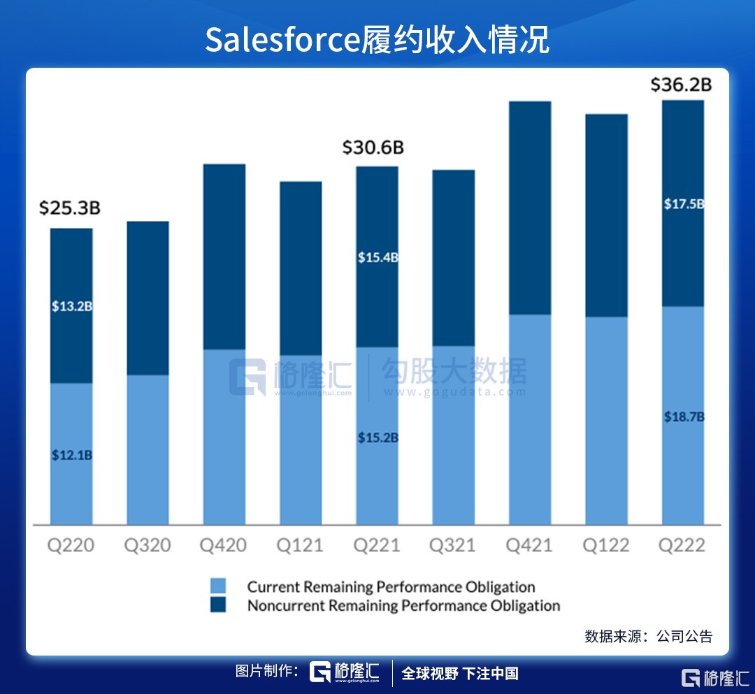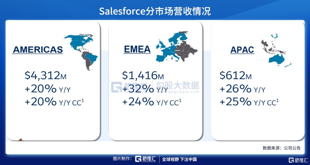隨着對直銷和分銷渠道與基礎設施的持續投資,二季度 Salesforce 國際收入同比增速高於美國本土增速。EMEA 地區和 APAC 地區收入增速分別達到 32% 與 26%,且二者收入加總已約與本土收入相當。