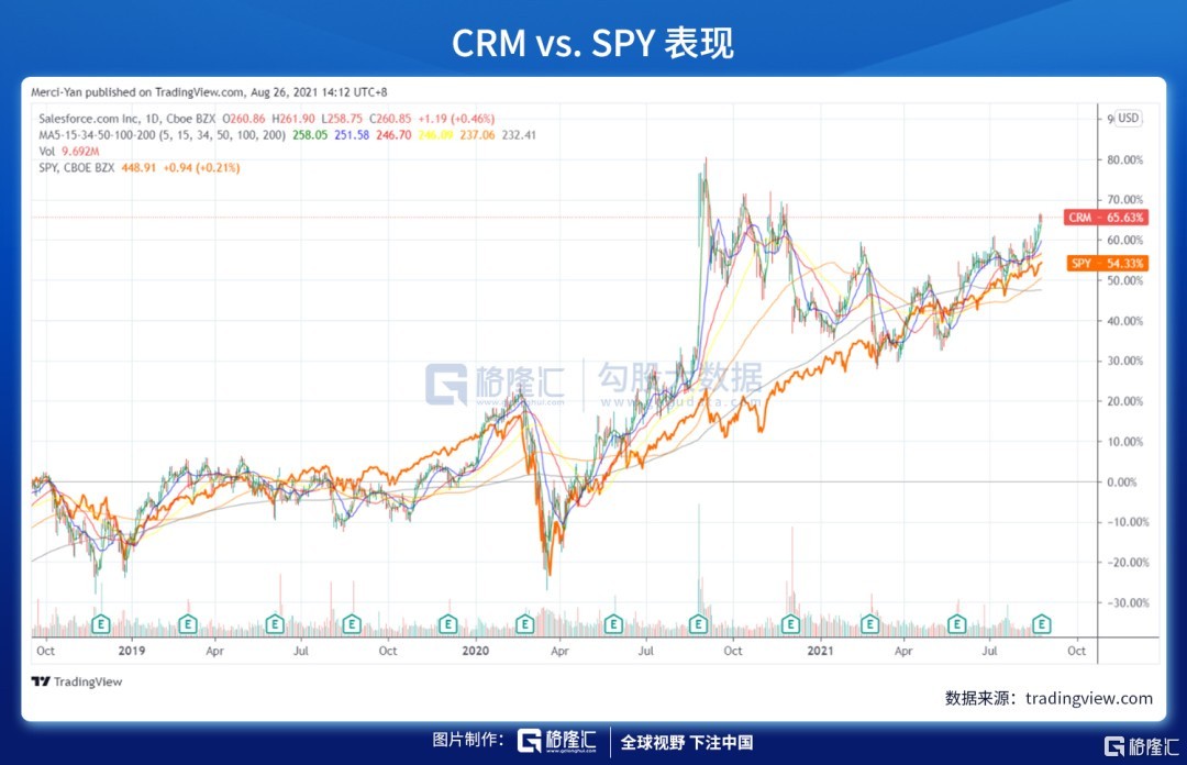 疫情以來,隨着世界各地的公司和政府繼續加快數字變革,CRM 股價表現超過大盤,達到 11%。