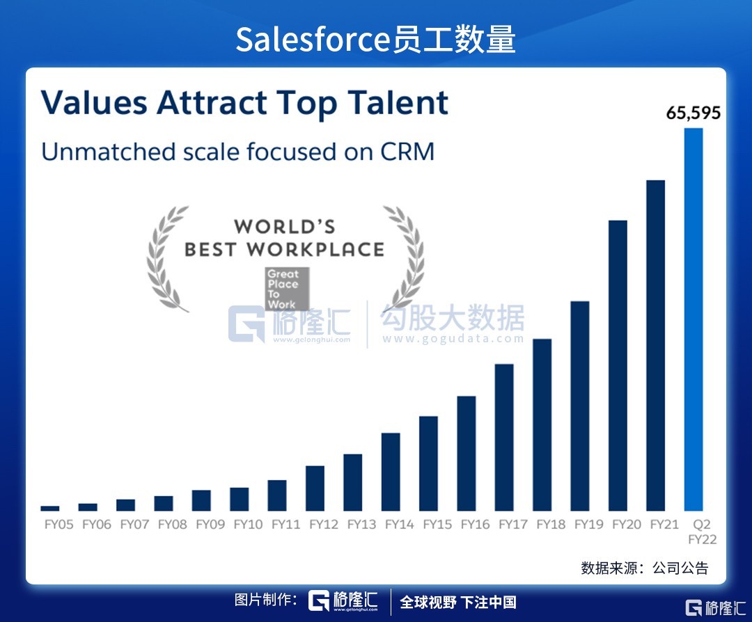 Salesforce 是一個以提供個人化需求進行客户關係管理規劃和服務的互聯網企業,總部位於美國加利福尼亞州舊金山。上月完成對商務通信公司 Slack 的收購,收購金額 277 億美元為歷史最大。在此之前,2019 年,Salesforce 以 157 億美元收購了 Tableau。