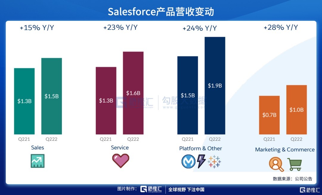 銷售、服務、市場營銷和商業、平台、Tableau、MuleSoft 和 Sack 等產品,價值都超過 10 億美元。