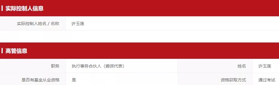 禮仁的備案信息中,實際控制人亦為許玉蓮,職務信息為執行事務合夥人(委派代表),這和上海瓴仁是一致的(見下圖)。
