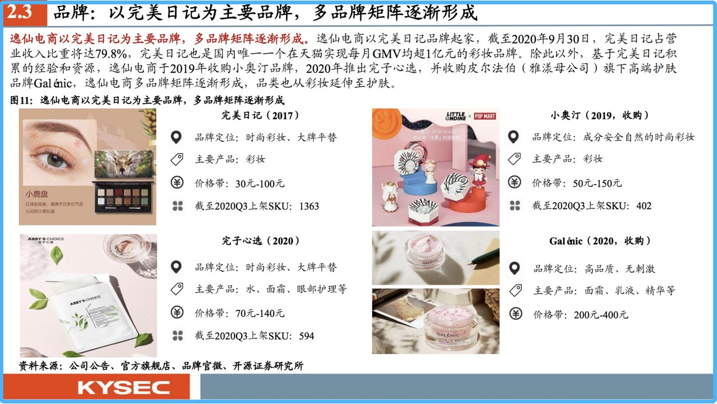 逸仙電商品牌矩陣(圖片來源:開源證券)
