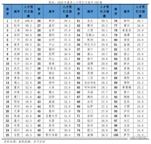 2021 中國城市人才吸引力排名:京杭滬居前三