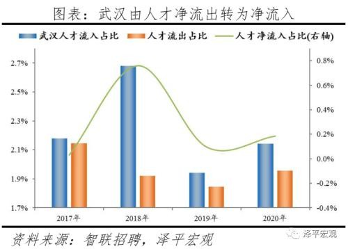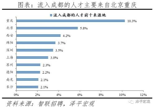 4)武汉:2017-2020 年人才净流入占比分别为 0.0%、0.8%、0.1%、0.2%,2017 年由负转正,主因 “百万大学生留汉” 政策实施、生活成本较低。2011-2019 年武汉常住人口增量平均为 16 万人,常住人口保持较高增长。2017-2020 年武汉人才流入占比分别为 2.2%、2.7%、1.9%、2.1%,人才流出占比 2.1%、1.9%、1.8%、2.0%,逐年下降,使得人才净流入占比分别为 0.0%、0.8%、0.1%、0.2%。主要因为 2017 年开始的 “百万大学生留汉创业就业工程”,大学生可以低于市场价 20% 买到安居房或租到租赁房;不满 40 周岁的留汉大学毕业生可凭毕业证落户,硕士、博士不受年龄限制可直接落户;专科、本科、硕士、博士的指导性最低年薪标准分别为 4 万元、5 万元、6 万元、8 万元。根据武汉市委组织部公布的数据,2017-2019 年新增留汉大学生共 109.5 万人,提前两年完成 2017 年确定的五年达到 100 万的目标;2020 年,新增留汉大学生 30.2 万人。从来源看,人才向武汉流入的前十大城市分别为北京、深圳、成都、西安、上海、黄冈、长沙、南昌、郑州、孝感,合计占比达 37.5%。从去向看,武汉人才外流的前十大城市分别为深圳、上海、北京、广州、杭州、西安、成都、长沙、襄阳、宜昌,合计占比达 42.0%。
