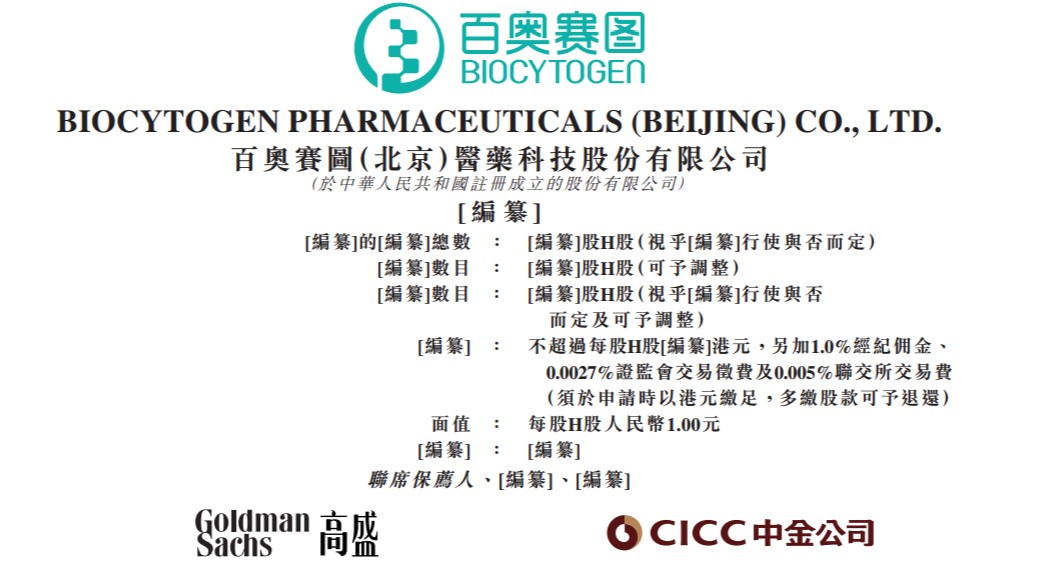 億歐大健康近日從港交所獲悉,百奧賽圖(北京)醫藥科技股份有限公司(簡稱:“百奧賽圖”)日前向港交所遞交招股書,準備在香港上市,聯席保薦人有高盛、中金公司。