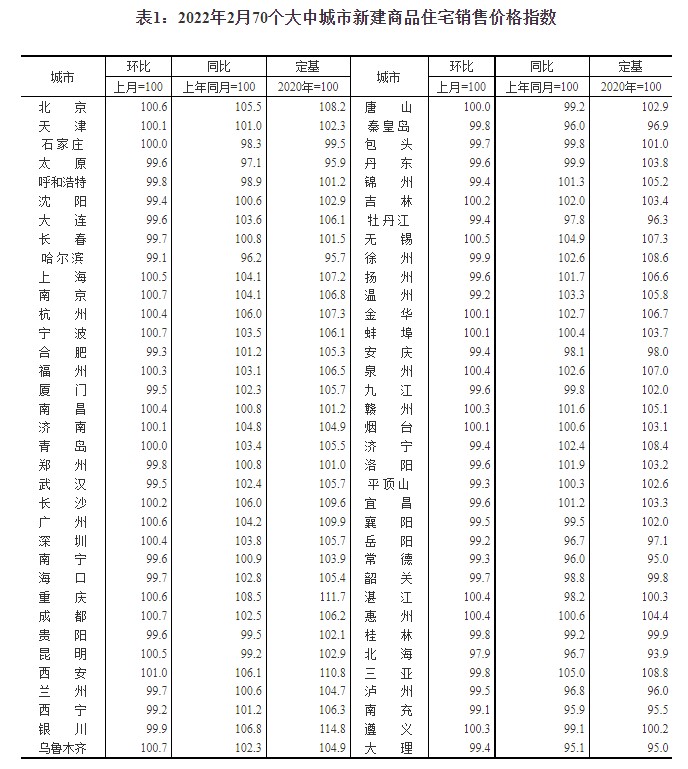 2 月 70 城房价出炉:一二线城市新房和二手房售价同比涨幅回落或持平
