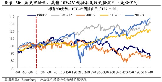 長端美債利率的上行可能尚未結束,警惕利率上行對成長股的衝擊。如前所述,要在高通脹壓力下聯儲二季度預期將繼續維持鷹派,貨幣政策緊縮對利率上行的牽引仍將延續。而為了緩解曲線倒掛,聯儲大概率採取縮表來抬升長端利率,這意味着 10 年期美債利率的上行可能並未結束。就美股而言,由於歷次 10Y-2Y 曲線倒掛到實際發生衰退的時間有很大差異,倒掛後美股的走勢也呈現出較大的不同。對於整體股指而言,短期加息靴子落地之後,股市的重心可能將切回盈利層面。但值得注意的是,在美債曲線呈現熊平的過程中,要隨時警惕估值衝殺帶來的波動,尤其是高估值的成長板塊,受到的潛在壓力可能更為顯著。
