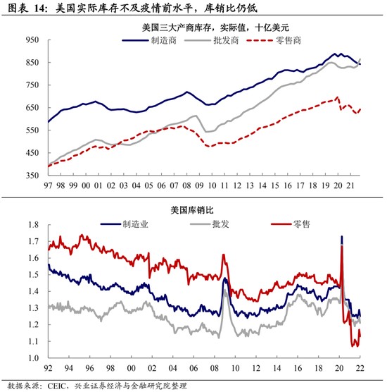 本輪價格的高企,在庫存層面表徵為實際庫存的去化。美國庫存的上行主要是價格因素導致的,而剔除價格的實際庫存量還在被消化,庫銷比仍然處於較低的位置。