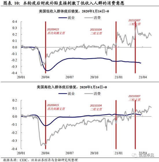 疫後供給衝擊之一:低收入羣體議價能力短期抬升,供需錯配加劇推升工資。當前美國勞動力市場的癥結在低收入羣體:失業補貼的發放也使得低收入人羣的議價能力獲得了短期的提升,導致其在相當一段時間內迴歸勞動力市場的意願降低,這使得交運倉儲等行業勞動力市場恢復速度較慢,供不應求的情況突出。