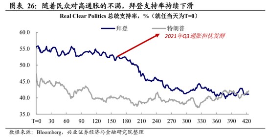 政治壓力的角度看,貨幣政策配合打擊通脹的訴求仍然高。我們在 2 月 9 日報告《再議高通脹背景下聯儲的獨立性》中討論過,聯儲自 11 月底以來政策急轉彎,除了誤判供需改善情況導致落後於曲線之外,壓力還來自於政治:由於民眾對政府處理通脹不滿,拜登支持率 2021 年三季度起明顯回落,目前只有 41%;考慮到 2022 年 11 月美國國會兩院將迎來中期選舉,這顯然不利於民主黨繼續掌控兩院。因此,政治壓力下,貨幣政策也需要繼續鷹派抗通脹。