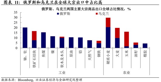 疫後供給衝擊之二:俄烏衝突對原油和其他大宗商品的供給擾動。俄羅斯和烏克蘭在全球大宗商品供應鏈中佔比較高,在當前供需緊平衡的狀態下,俄羅斯和烏克蘭的供給擾動可能會進一步推升全球通脹。當前的談判以及對俄羅斯的制裁可能意味着能源和其他大宗商品的供給擾動有一定的持續性,從而進一步推升短期(比如 2 年期)的通脹預期。