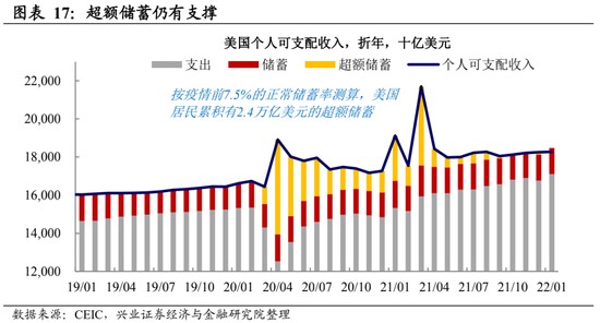 超額儲蓄的支撐下美國消費仍有一定的韌性;